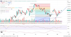 - Bollinger Band Resistance: 25,157.35, which could confirm sustained upward momentum if breached