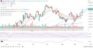 The Nifty has formed a strong bullish candle with higher highs and higher lows, signaling continuation of the upward momentum. Key technical observations: